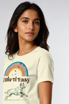 Sunshine vibes, soft fabric, and a message we all need — Take It Easy. This pale yellow short sleeve tee is a boho-inspired essential for dog moms, dog dads, teens, and kids who love keeping life light and full of puppy love. Made from premium, breathable cotton with a relaxed fit, this dog lover t-shirt is perfect for casual days at the park, beach strolls, or weekend lounging with your furry best friend.